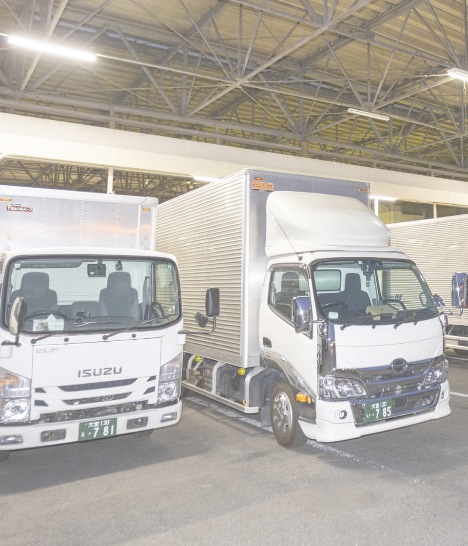 当社は上尾市・川口市に拠点を構え、毎日30台~40台の2t車両が運行しています。大型車両では進入できない狭い場所にも入れるため、配送の効率も良く、荷物を迅速にお届けすることができます。
